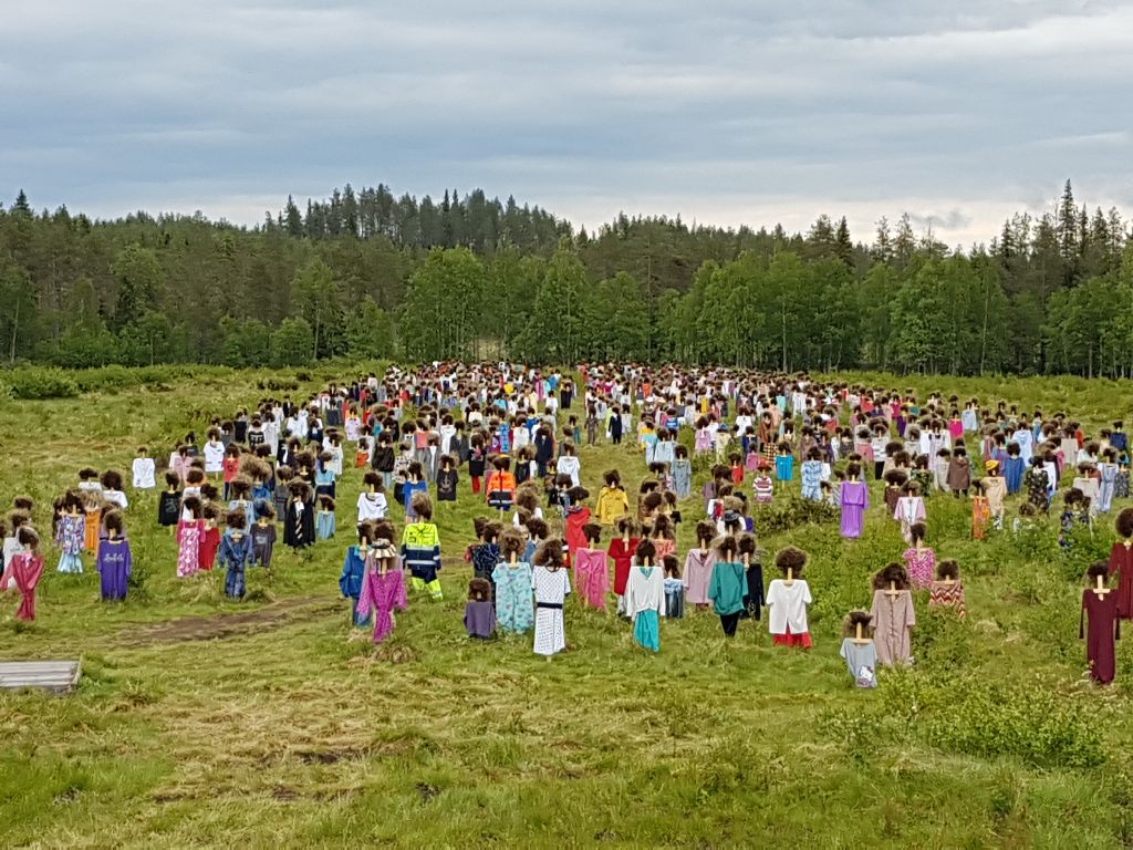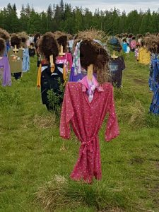 Auf der Weiterfahrt Richtung Norden machen wir einen Halt in Suomussalmi beim „Stillen Volk“. Auf einem grossen Feld stehen ca. 1000 verschiedene Vogelscheuchen, welche jeden Frühling neu angezogen werden und der Kopf wird aus Moormutten mit Gras neu gestaltet. Der Künstler stellt es dem Betrachter frei, sich über ihren Sinn und Zweck einen Reim zu machen.