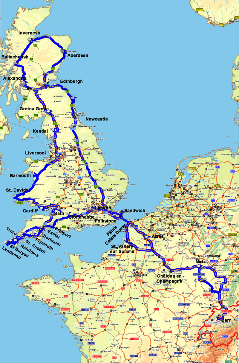 Unsere Reiseroute durch GB während 8 Wochen